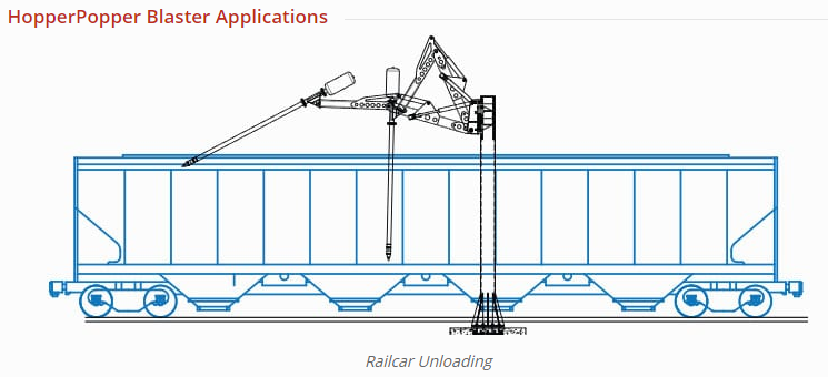 Unloading bulk materials from railcar and semi-truck hoppers can be especially difficult when meal or grains harden and refuse to flow. To loosen bulk materials, many methods have been tried - vibrators, scrapers and mechanical impact devices ranging in size from hand held to large hydraulic and air-operated equipment. Some of these devices can be dangerous, costly, or time-consuming to use. Some can even damage the hopper, railcar or truck, if used improperly.