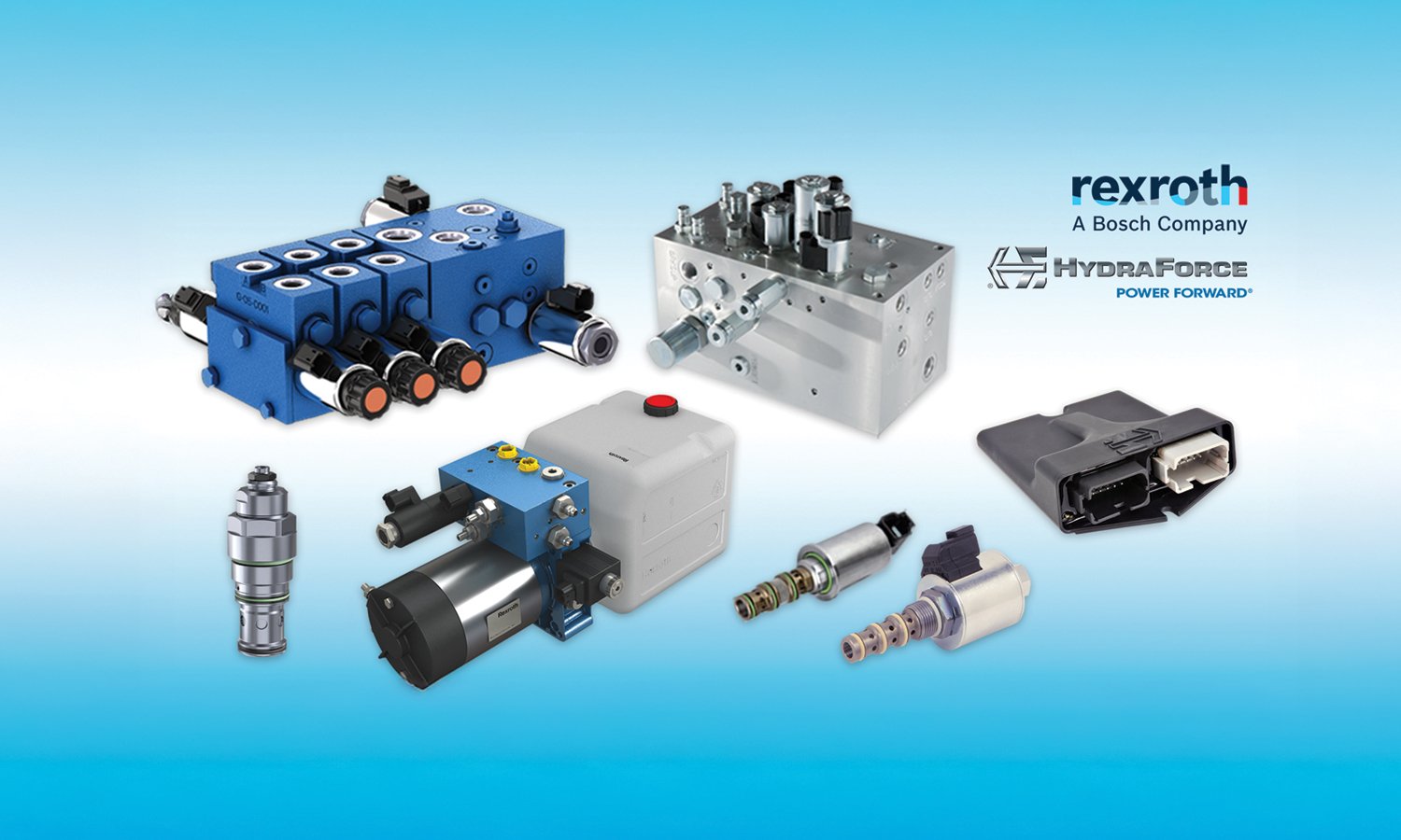 The booth will showcase the latest innovations from Bosch Rexroth and HydraForce, including: